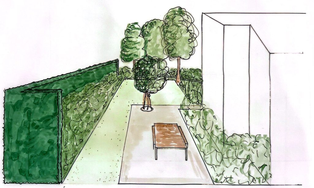 Als je akkoord gaat met de offerte, maak ik een eerste conceptontwerp. Dit is een globale schets waarin de indeling en de belangrijkste elementen van de tuin worden weergegeven. Ook teken ik een 3D schets. We bespreken dit ontwerp samen, zodat je feedback kunt geven en ik het kan aanpassen waar nodig.